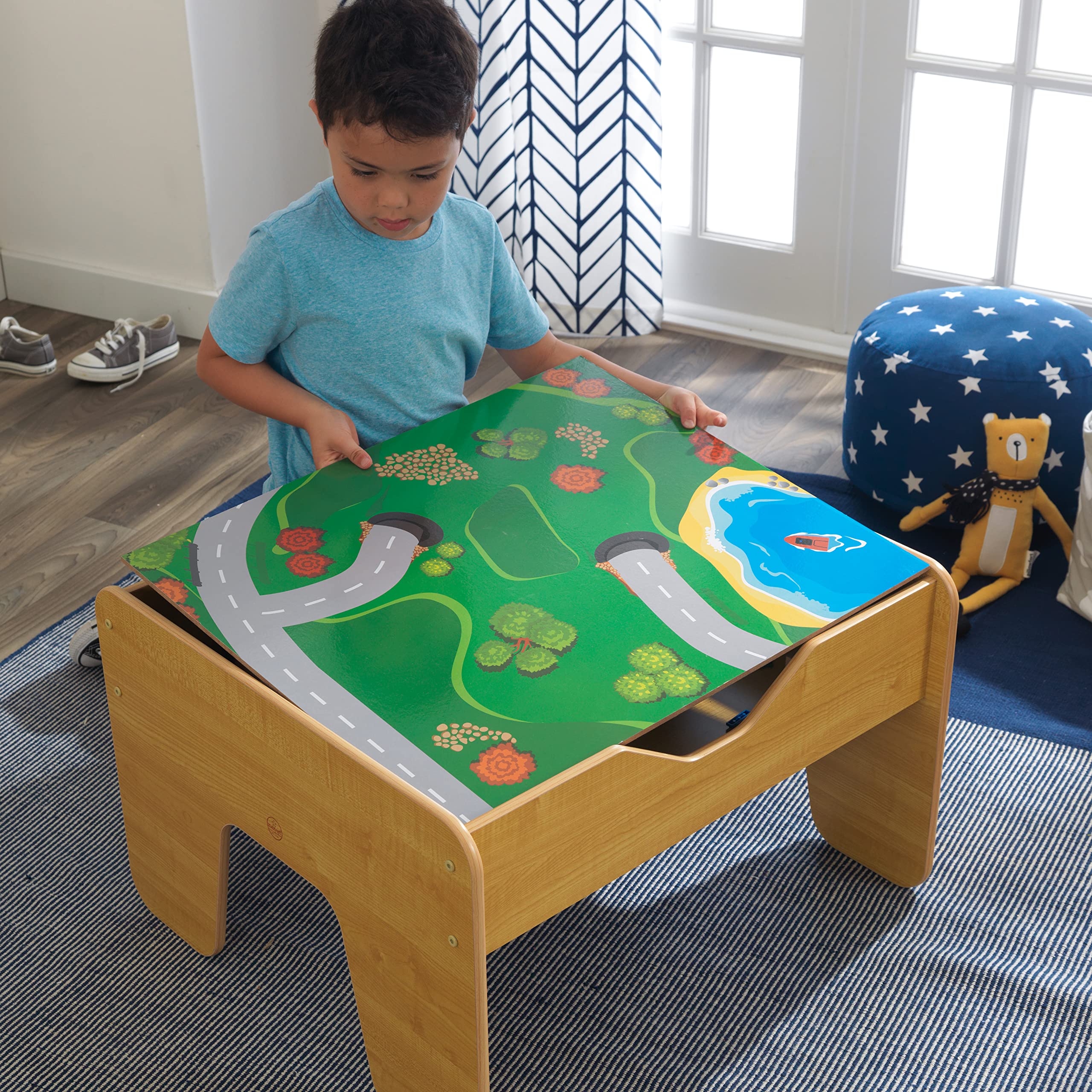 KidKraft 2-in-1 Reversible Top Activity Table with 200 Building Bricks and 30-Piece Wooden Train Set, Natural, Gift for Ages 3+