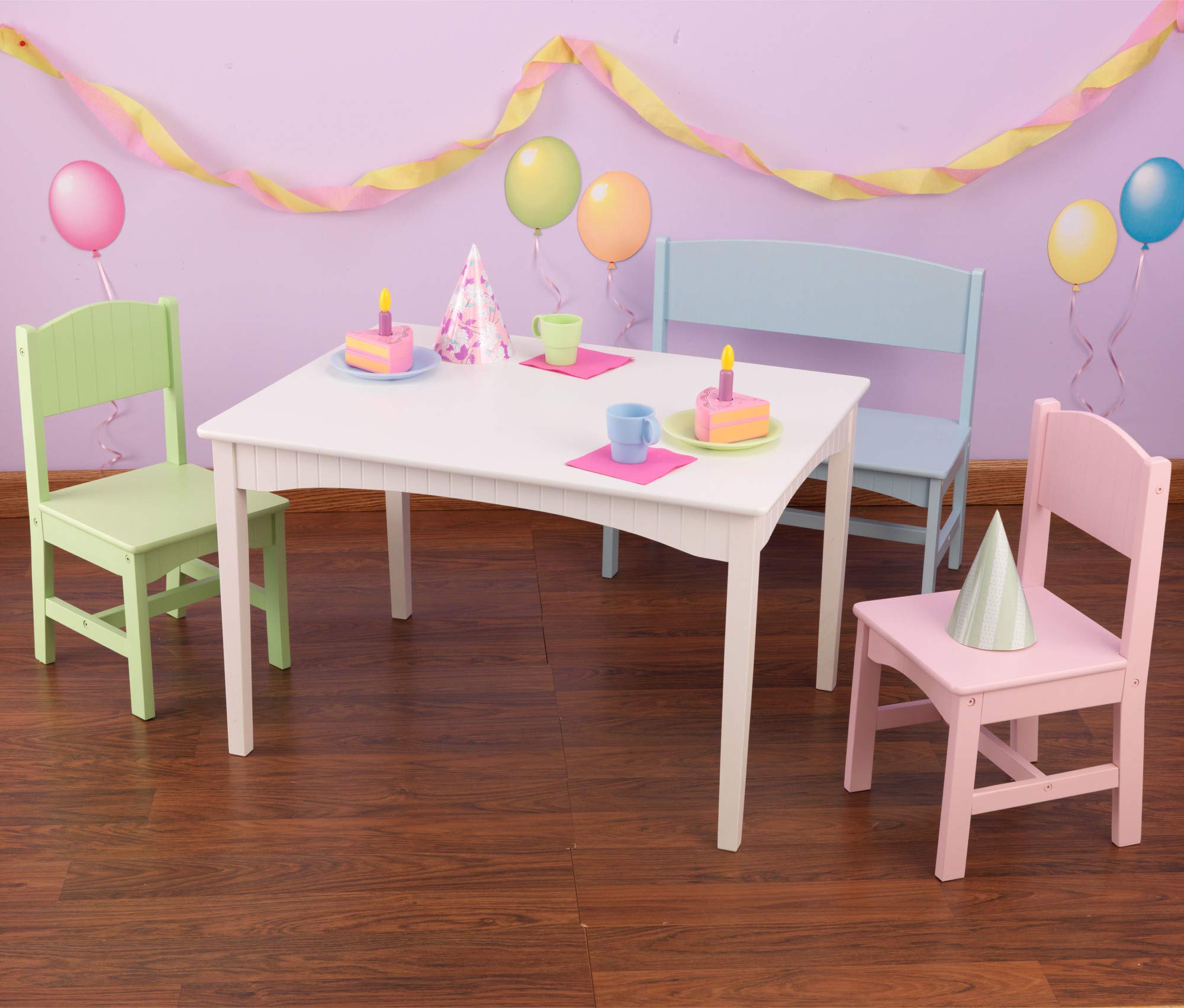 KidKraft Nantucket Wooden Table with Bench and 2 Chairs, Multicolored, Children's Furniture - Pastel, Gift for Ages 3-8—